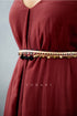 This luxurious Gulnar Farhana Kamarbandh Belt combines timeless elegance with modern style. The burgundy Slub Silk material with intricate Gota embroidery and tiny thread and button detailing will elevate any look. The perfect style choice to take you from day to evening.