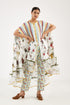 Meet us where grace and quirk merge. Short at the front with a cascading trail at the back, our asymmetric Kaftan brings together playful stripes and sweet florals in harmony. It is paired with our Wale Pants for an ensemble that is one-of-a-kind.