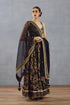 This gorgeous Gulghast Rabia Anarkali Set contains a jet black Anarkali featuring intricate hand embroidery and digital Bhagalpuri print, combined with a sheer cotton voile dupatta. It's crafted with a combination of luxurious handwoven Chanderi and cotton voile, for a beautiful touch of elegance. Wear it and feel like royalty.