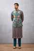This Neelam Faiz Bandi Set is a beautiful blend of traditional and modern style. Meticulously crafted from handwoven Chanderi and Cotton Silk fabrics, the set features a rich Blue color and intricate hand block print, quilting, and digital print work. It includes a Bandi, Kurta, and pants to complete the look.