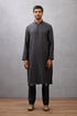 Introducing the Nisha Rahim Kurta Set, featuring handwoven Chanderi and Cotton Voile fabrics in a classic black color. Accented with quilting for a beautiful finish, the set includes a kurta and pants for timeless elegance. Crafted to last, this elegant kurta set is perfect for special occasions.