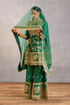 The Sheesham Meera Sharara Set from the Bisri Collection features a luxurious combination of raw silk and butterfly net fabrics, intricately embroidered with hand adda work and highlighted by dori embroidery. An exquisite green hue completes the timeless, elegant look.