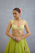The Angoori Meera Blouse is crafted with jeni silk, in a vibrant green colour. The flattering cut of this blouse makes it a fine addition to your wardrobe.