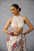 A unique, modern take on regular traditional blouses, the Coromandel Pravya Blouse is crafted with a lightweight georgette fabric. The halter neck style of this blouse is sure to be an attractive and modern addition to your traditional saree days!