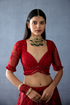 This Gulmohar Pankhuri Blouse is made of butterfly net and cotton silk, for the perfect blend of elegance and comfort. Decorated with hand embroidery, dori embroidery, and hand block print, it's sure to make you stand out. With fringe tassles in the same tone of red and sequin work all over, it's the perfect addition to any wardrobe.