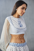 The Neeli Gauraiya Poulami Blouse is perfect for any occasion. It's made with handwoven Chanderi fabric, and features a digital print in a beautiful blue color. This blouse is stylish and comfortable, making it an ideal addition to any wardrobe.