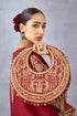 This stylish alluring Sindoori Hobo Bag is carefully crafted with Hand embroidery, Dori embroidery and Hand Adda work in Raw Silk fabric. Its vibrant red hue and intricate mirror work make it a timeless piece you'll love to flaunt. Add a luxurious touch to your wardrobe with this beautiful bag.