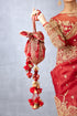 The Gul-Bano Iqra Potli is a luxurious Hand-embroidered accessory perfect for special occasions. Crafted from Silk Velvet with bright red and yellow ambi leaf motifs, it is sure to make a statement. Its intricate detailing of Dori embroidery and Hand Adda work is sure to stand out in any outfit.