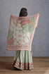 Introducing the Jaituni Hiral Scarf, a chic, light accessory crafted from Handwoven Thin Chanderi fabric in a beautiful green hue. Featuring a stunning Digital print of a sage green peacock Chintz, this scarf is perfect for adding a unique, refined touch to any look.