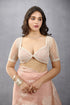 This gorgeous Kaner Geetika Blouse flaunts a unique butterfly net fabric in old rose pink, expertly set off by dori embroidery. The luxury silk lycra blend ensures that this blouse is stylish, comfortable and of the highest quality. The perfect addition to any wardrobe.