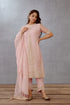 This Kaner Ojal Kurta Set is perfect for any formal occasion. Crafted from luxurious handwoven chanderi, cotton voile, and silk organza, with old rose pink dori embroidery and hand adda work, this set is sure to make a statement. With its sheer puffed sleeves, this set is as timeless as it is fashionable.