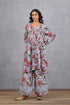 Look your best in this Samsara Nazam Co-ord Set made of luxurious cotton silk fabric with a stylish sea blue chintz print. The pintuck kurta is complemented perfectly by the embroidered pants, showcasing intricate digital print and hand embroidery work. Feel comfortable wearing this stunning ensemble no matter the occasion.