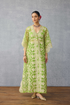 The beautiful Angoori Aqsa Kaftan Set is the perfect statement piece. The hand embroidered green organza fabric creates a luxurious look that will add a touch of sophistication to any outfit. This exclusive set includes a kaftan, bralette and pants, for a complete and stylish look.