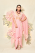 The Gulaban Zuri Cape Set is a luxurious statement piece, crafted with fine silk crepe organza, butterfly net and cotton silk fabrics. This set features intricate hand and dori embroidery. The blush pink color adds a soft summer vibe to this look.