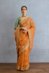 The Pukhraj Ramani Saree is crafted from pure organza fabric with a Jeni silk border. It is intricately embroidered with dori work, traditional dabka and badla work in rose gold and gold threads, along with pearl details. The saree’s amber-orange shade and exquisite craftsmanship make it a stunning addition to your festive wardrobe.