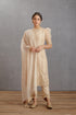 This Mogra Ojal Kurta Set is an exquisite choice for your traditional wardrobe. Crafted from handwoven Chanderi, Cotton Silk, and Silk Organza fabric, this set includes a Kurta, Pants, and Odhni, all adorned with intricate Hand Embroidery and Hand Adda Work. Its classic ivory hue looks stunning and timeless.