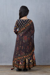 The Nisha Mastani Anarkali Set is a beautiful, elegant outfit made from handwoven Chanderi and Silk Organza fabrics. It is designed in black with unique digital print, Hand Adda Work, and Hand Block Print. The set includes an anarkali and an accompanying odhni. This exquisite outfit is perfect for special occasions and is sure to make you stand out.