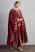 Experience luxuriously crafted fashion with the Sanobar Sufiya Kurta Set Expertly handwoven Chanderi and Cotton Voile materials in a striking Garnet Red create a timeless and chic look. Embellished with intricate Aari Waraq embroidery, this set includes a Kurta, Pants, and Odhni. Feel sophisticated and confident while making a bold fashion statement.