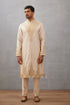 Introducing the Mogra Aabid Kurta Set, expertly crafted with luxurious Chanderi and Cotton Silk fabrics. The hand embroidered ivory design gives the apparel a graceful, timeless look. This set includes a kurta and pants, perfect for any occasion.