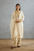 This Gul-Bano Pushti Kurta Set is an exquisite, handcrafted garment masterpiece. The luxurious raw silk of the Kurta contrasts with the cotton voile of the pants and the sheer silk organza of the Dupatta, all adorned with Gota embroidery for a beautiful look. Intricate details like hand embroidery and Dori embroidery make this a must-have for a special occasion.