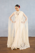 The Maahe Lasika Saree Set is a stunning ode to Indian heritage and craftsmanship. Crafted in georgette, jeni silk and butterfly net, its elegant ivory shade exudes divine charm. Featuring intricate dori embroidery and motia work, this set includes a saree, blouse and a cape- thus, a true vision of luxury.