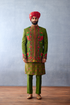 The Dil Saaz Navez Jacket Set is a luxurious festive ensemble for your wardrobe. Crafted with jeni silk and slub silk, this set boasts gorgeous digital prints in lush green, making it stand out in its unique approach to traditional menswear.