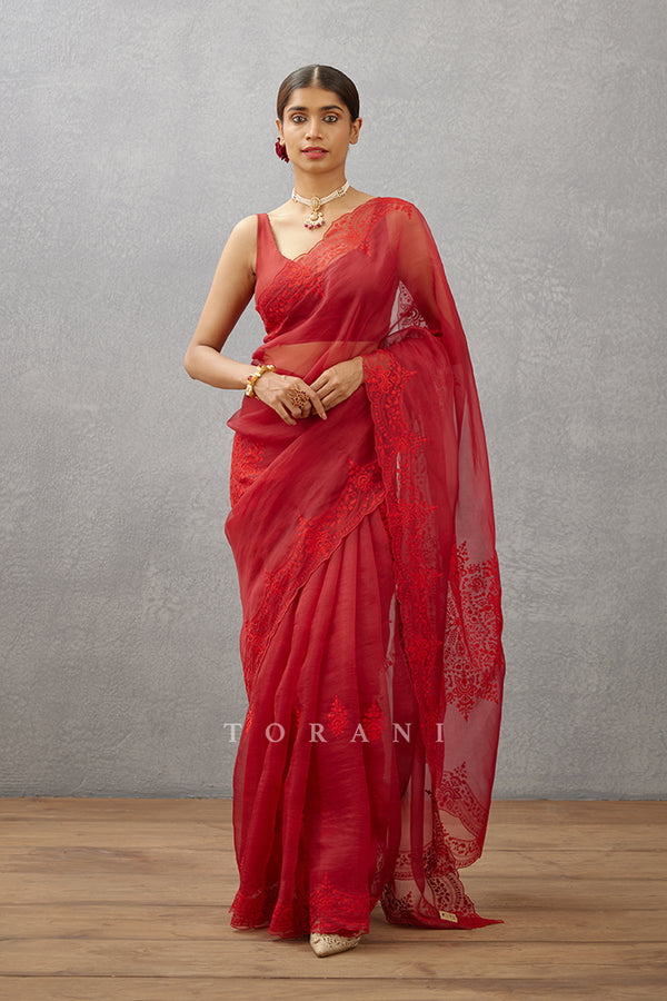 Jacqueline Fernandez in our Surkh Farrin Nida Saree Set