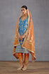 Experience the best of India's traditional craftsmanship with the Rang Shyam Zarin Kurta Set. This luxurious ensemble features a Persian blue slub silk kurta with stunning gota embroidery and hand adda work with gota. This intricate and elegant design is artfully combined with a digital Bhagalpuri print and orange accents to create a truly unique look.