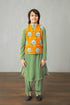 Glam up your wardrobe with the Santree Dhaari Kazeem Bandi Set. Crafted from a blend of luxurious handwoven Chanderi, Cotton Silk, and Cotton Voile fabrics, this set offers a sophisticated look. Featuring a digital print and hand block print design in a bright orange hue, you'll be sure to stand out. Includes a kurta and pants.