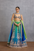 The gorgeous Varnika Meera Lehenga Set is crafted with a comfortable combination of organza and jeni silk fabric. It features intricate embroidered details with tropical floral motifs, and sequin work. The majestic ombre tone of this lehenga offers a unique appeal.