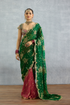 The Zamardi Aqifa Saree is a gorgeous find for the ones who love the glamour of jewel tones. Crafted with georgette, the green and hot pink shades of this saree gives it a regal look, and is adorned with dori, badla, dabka and sequin work- offering a graceful look at every occasion.