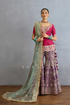 The Chandramallika Manmayi Gharara Set is crafted from Jeni silk and butterfly net fabrics. This exquisite set includes a short kurta, gharara, and odhni, adorned with intricate pearl, zari, and dori work. The harmonious blend of blue, pink, and purple hues adds a touch of elegance, making it perfect for special occasions.