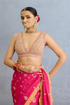 The Pukhraj Vishakha Blouse is crafted from Jeni Silk and hand-embroidered with zari for an enchanting look. Detailed with sequins, dabka, and pearl embellishments, this orange blouse is an extraordinary piece to behold. Wear it as a choli or style it with a saree—the elegance of this blouse is unmatched in every way.