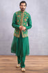 The Panna Gulfam Bandi is a stunning piece of craftsmanship. Its three layers are made of luxurious Handwoven Chanderi, Cotton Silk fabrics in a beautiful green hue. The set is finished with exquisite Digital Print and Hand Block Print techniques. Perfect for special occasions.