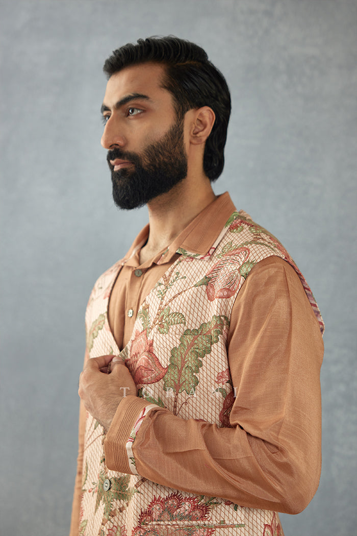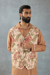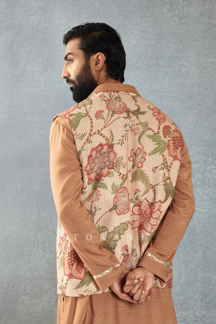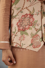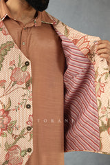 This Gulabi Kahan Bandi is the perfect statement piece for any special occasion. Its elegant fabric is made of Handwoven Chanderi, and it's a luxurious piece for your wardrobe. The vibrant pink colour is complimented by a combination of quilting and digital prints.