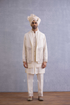 The Maahe Nahan Bandi features intricate doria embroidery, crafted from a premium Jeni silk in a classic ivory color. The Bandi is a perfect addition to any casual or formalwear, elevating the look with its meticulous and fine craftsmanship.