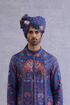 The Neelambar Viraaj Saafa is crafted with a luxurious handwoven chanderi fabric in a gorgeous blue shade, highlighted with monochrome digital print.