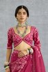 This Padmaraga Pankhuri Blouse is a fine piece crafted with luxurious jeni silk fabric in a dark plum pink shade. It features intricate hand and dori embroidery for an elegant look that turns heads your way.