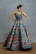 The Mayurika Neelnaa Lehenga Set is a celebration of rhythm, colour, and fluid movement—true to the spirit of the TAAL collection. Crafted in luxurious jeni silk and organza, the ensemble features vibrant digital prints layered in shades of blue, green, and multicoloured accents. The flowing lehenga is paired with a complementary corset-shaped blouse and odhni, creating a harmonious silhouette that feels festive yet effortlessly graceful. Designed for celebrations that call for colour, comfort, and contemporary elegance.