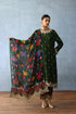 The exquisite Dil Shadaab Urvi Kurta Set is crafted with luxurious slub silk and organza fabric. The set features a kurta, pants and odhni, all adorned with prints and embroidered borders, making this a must-have for special occasions.