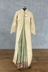This Jaituni Dhuni Nakshi Jacket Set is a beautiful, high-quality ensemble of a jacket and dress handcrafted by expert artisans using Handwoven Chanderi, Cotton Silk, and Cotton Voile fabrics. The set is adorned with Crushing, Hand Block print, Dori embroidery and Hand embroidery works for an alluring and elegant look. Sophisticated yet stylish, the soft green set is perfect for any special occasion.