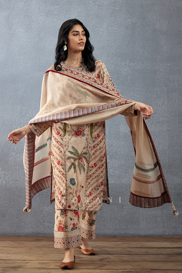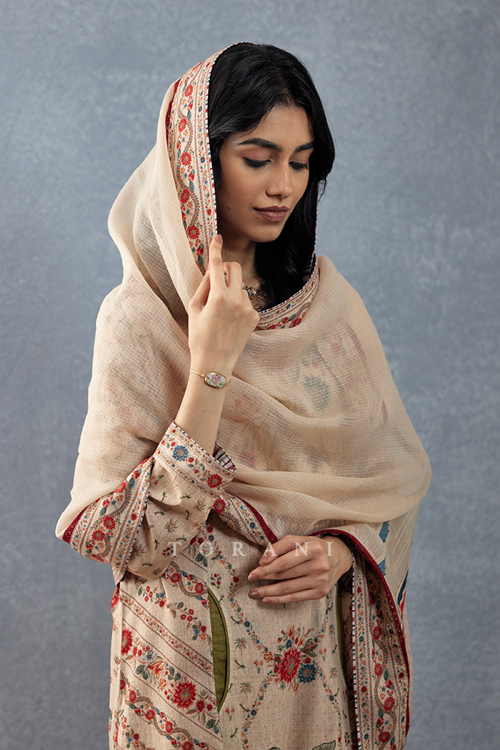 Look beautiful and feel comfortable with the Badami Abhidah Odhni. Boasting a high-quality Cotton Kota fabric, and crafted with Digital print technology, this beige Odhni is the perfect addition to your wardrobe. Its delicate texture will keep you comfortable all day long.
