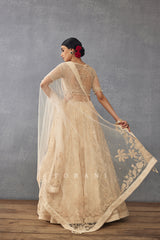 This handcrafted Mradu Pankhuri Odhni is made of premium quality Silk Organza and Handwoven Chanderi, featuring elegant Hand embroidery and Hand Block print. This beautiful ode to traditions is the perfect combination of tradition and modernity in its chic beige color.