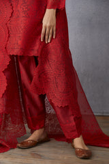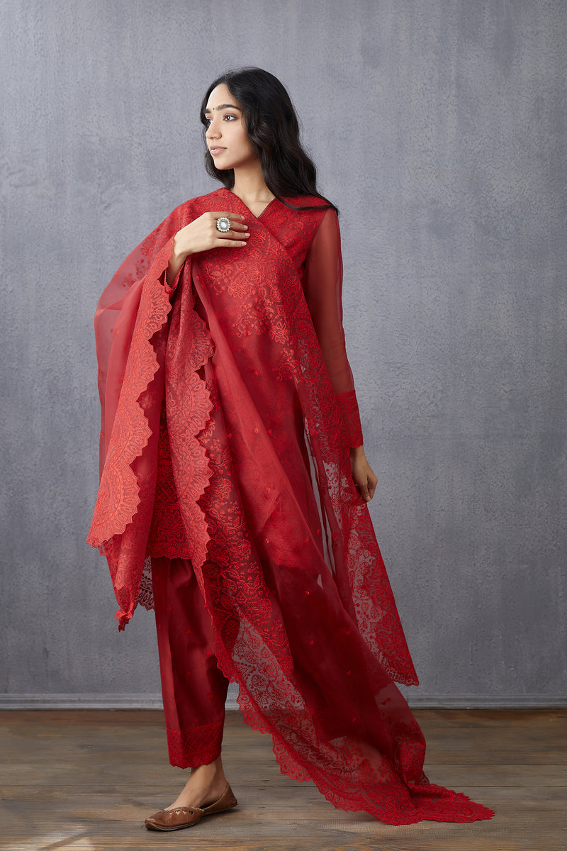The Surkh Sloka Odhni is crafted from the finest Silk Organza fabric and is perfect for special occasions. Its exquisite texture and delicate sheen will create a timeless and elegant look for any event.
