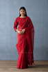 The Gulmohar Dea Saree is a stunning choice for any special occasion. Handcrafted with a classic red silk organza base, the saree is adorned with finely detailed dori and hand embroidery, and hand block print, providing an impressive and elegant look with ease.
