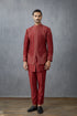 This Bhuri Chanderi Imam Jacket Set is perfect for a formal occasion. The three-piece ensemble features Handwoven Chanderi fabric, along with machine and hand embroidery for a unique, eye-catching look. The set includes a kurta, pants and jacket for a complete, stylish look.