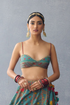 The Dil Nawaz Zarqa Bralette is a stylish addition to any wardrobe. Crafted in Jeni Silk and decorated with moti work, this blue bralette brings an elegant, feminine look with the lehenga.