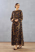 Introducing the Gulghast Amrut Maxi Dress! Made from premium slub silk with a digital Bhagalpuri print, this jet black maxi dress features churidar sleeves for a uniquely stylish look. The lightweight, breathable fabric makes this dress comfortable while the print gives it an eye-catching, fashionable touch. Experience fashion and comfort with the Gulghast Amrut Maxi Dress!