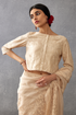 Look elegant in this beige Mradu Dea Blouse, handwoven with Chanderi and cotton silk fabric. The garment features hand embroidery to give you an exquisite look. Enjoy the luxurious feel and beautifully intricate design of this timeless piece.
