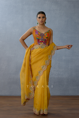 Redefining all shades of romance with Torani Classics. Crafted from Organza and adorned with intricate embroidery, the Dil Seher Samila Saree is a perfect blend of luxury and craftsmanship. The soft yellow hue is a must-have for your wardrobe.